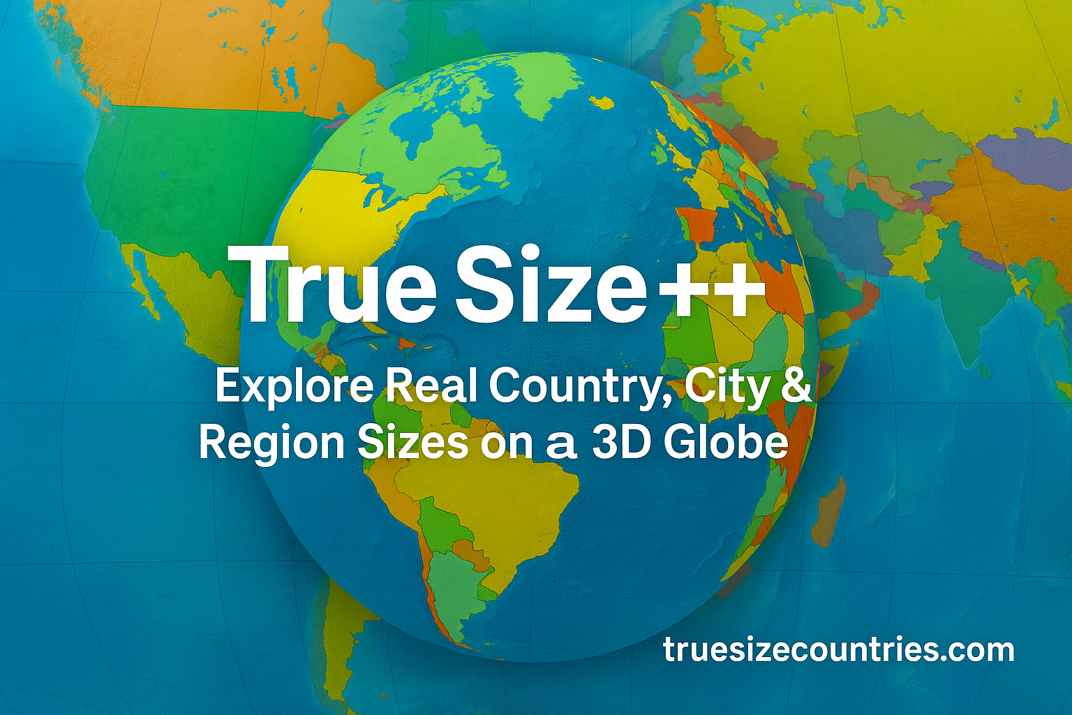 True Size Countries is an educational web application designed to help students, teachers, researchers, and geography enthusiasts understand how map projections distort the true size of countries and regions. Most world maps use the Mercator projection, which makes areas near the poles appear much larger than they actually are.